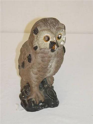 10" PAINTED CHALKWARE OWL - PAINT LOSS & WEAR;