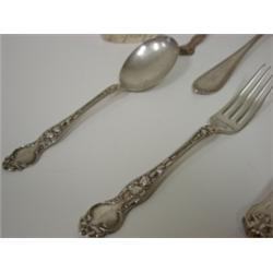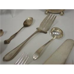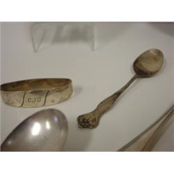 10 piece lot of assorted Sterling silver consisting of oval picture frame, square picture frame, monogrammed CJO napkin ring, one serving spoon, one monogrammed R meat fork, one Sterling handled cake server, one dinner fork, one tea spoon, one ladle, & hors d'ourve fork.