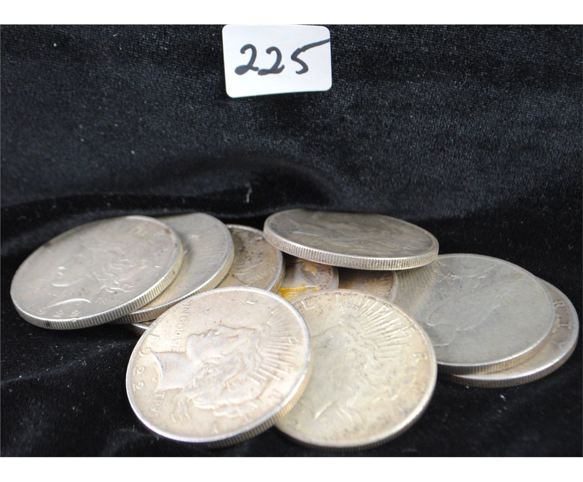 10 PEACE DOLLARS FROM SAFE DEPOSIT - MIXED DATES AND MINTS - SOLD PER COIN TIMES 10