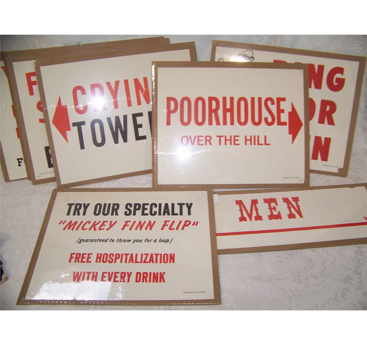 (10) PIECE ASSORTED VINTAGE HARRODS CLUB RENO NV. CASINO SIGNS & POSTERS
