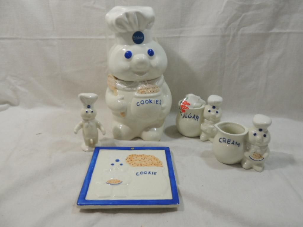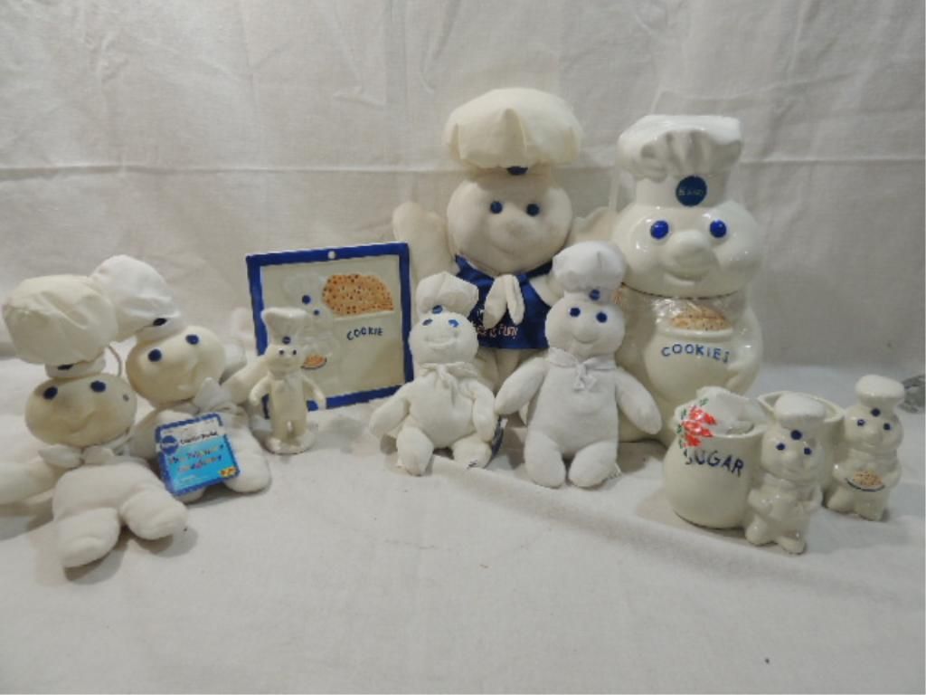 PLUSHES, SUGAR AND CREAM SET, ONE SHAKER, AND A COOKIE JAR. SEE PHOTOS FOR MORE DETAILS