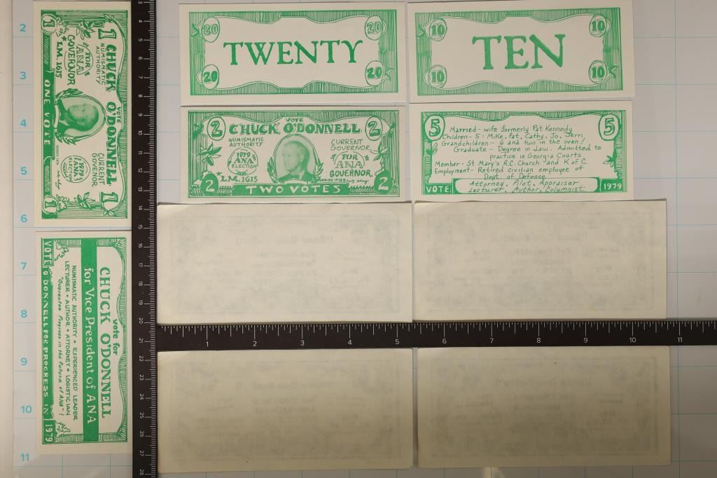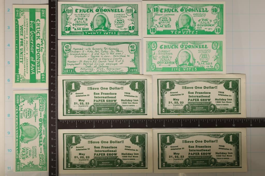 CHUCK O'DONNELL FOR GOVERNOR OF ANNA AND SAVE $1 SAN FRANCISCO INTERNATIONAL PAPER MONEY SHOW PIECES
