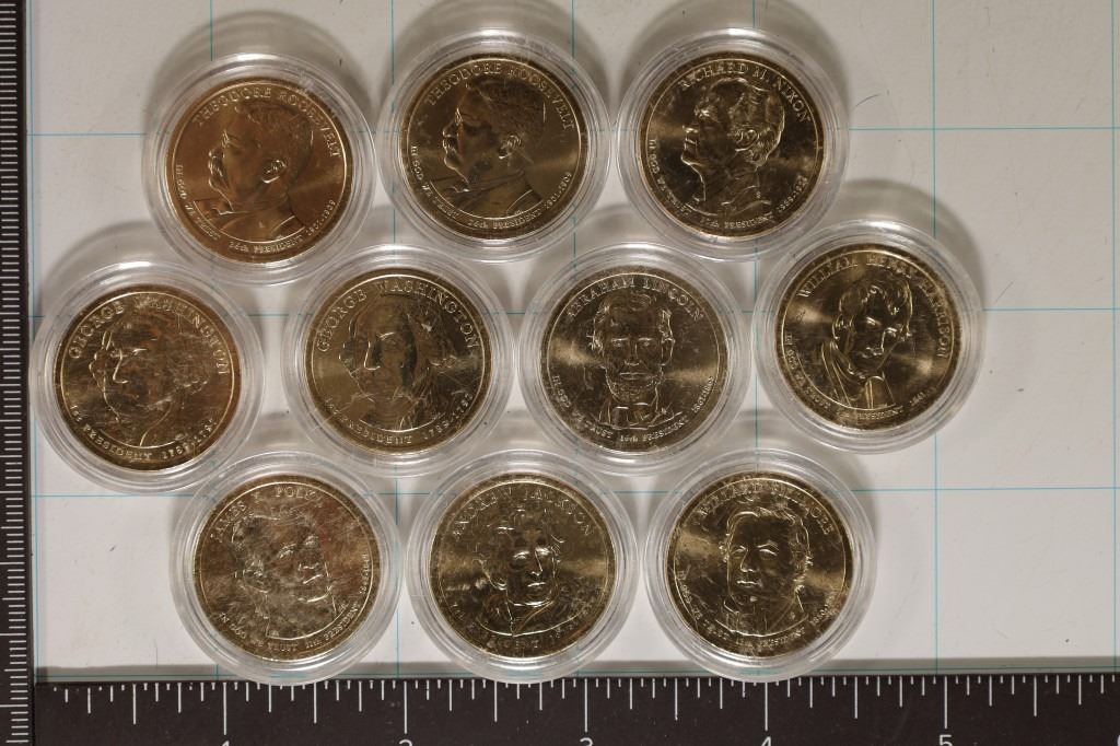 ROOSEVELT, 2-GEORGE WASHINGTON, NIXON, LINCOLN, HARRISON, POLK, JACKSON AND FILLMORE. IN HARD PLASTIC CAPSULE