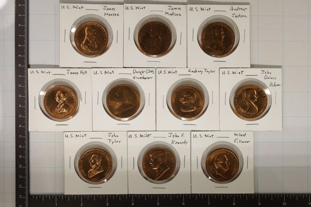 10-PRESIDENTIAL TOKENS 1.25", TYLER, KENNEDY,