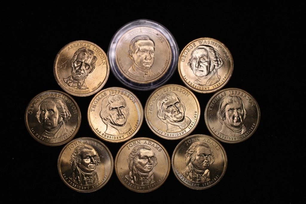 1-CALVIN COOLIDGE (IN PLASTIC CAPSULE), 2-GEORGE WASHINGTON, 3-THOMAS JEFFERSON AND 3-JOHN ADAMS