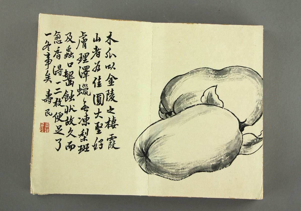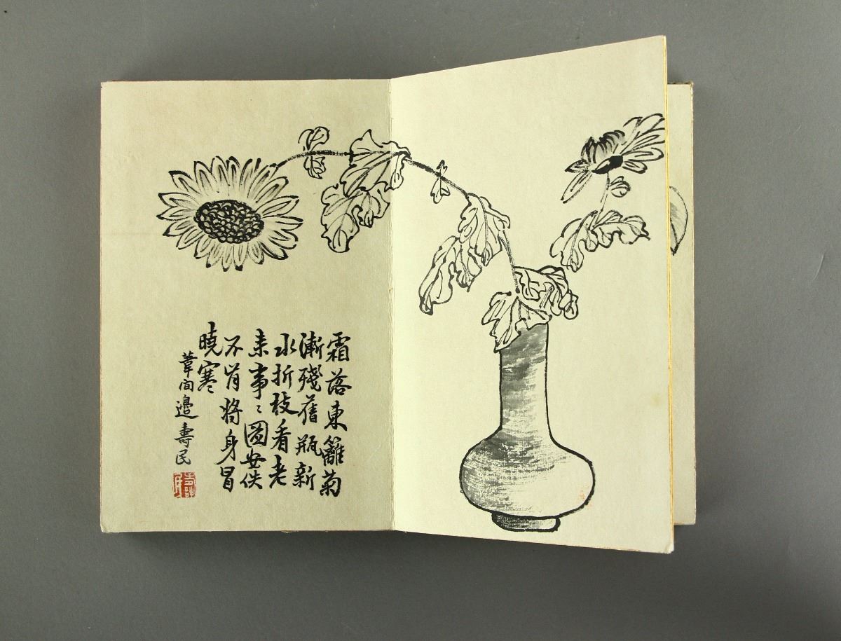 Flowers and plants along with script calligraphy inscription; Chinese ink on paper; ten-page booklet; signed Bian Shoumin and inscribed with artist seals on each page; 22.5 cm × 29.5 cm
