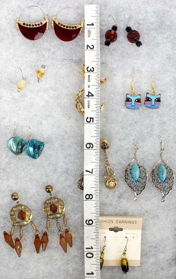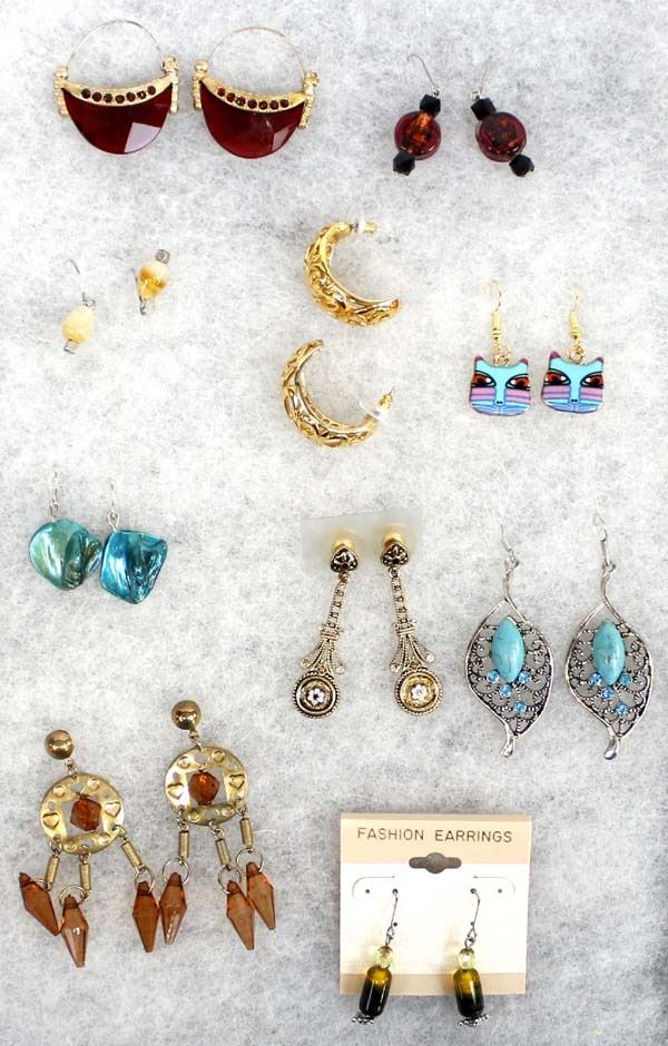 10 Pairs of Assorted Costume Jewelry Earrings, longest pair measures 2.75''L