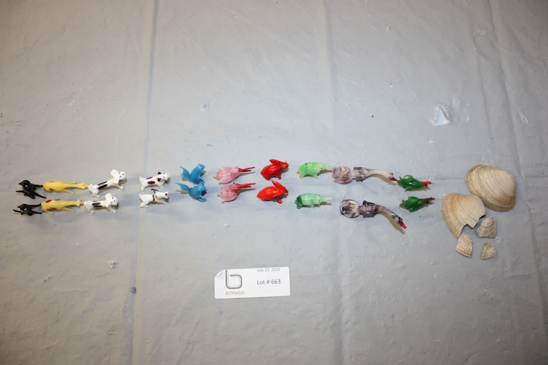 10 Pairs of Occupied Japan Glass Miniature Figurines and 2 Shells (1 Broken)