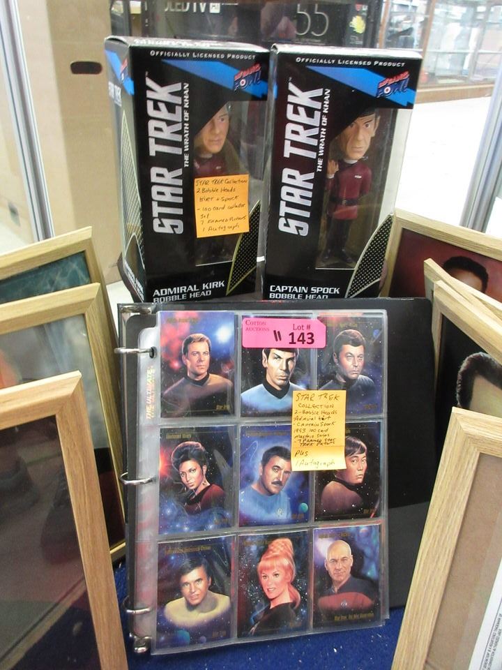 2 Bobble Heads (Kirk and Spock), 7 framed Head Shots of Star Trek Characters, 1993 Card Masters trading cards, 1 autograph.