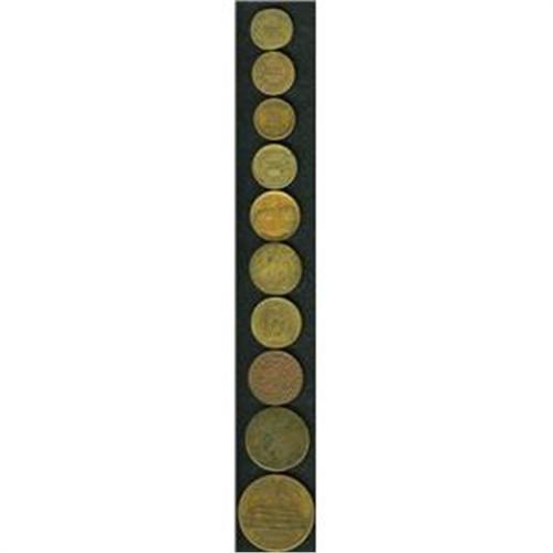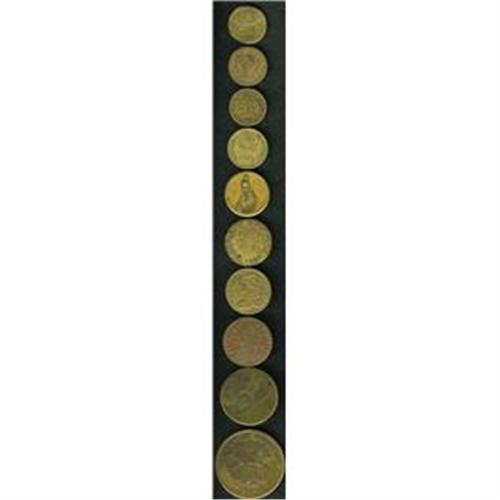 <B>10-Piece "Spielmunze" Group.</B></I> Ten different brass "Spielmunze" (play money) tokens from around the world. A nice lot that should appeal to a wide range of collectors.<BR><BR><b>Shipping:</b> Coins & Currency (<a target="_blank" href="http://www.heritageauctions.com/common/shipping.php">view shipping information</a>)