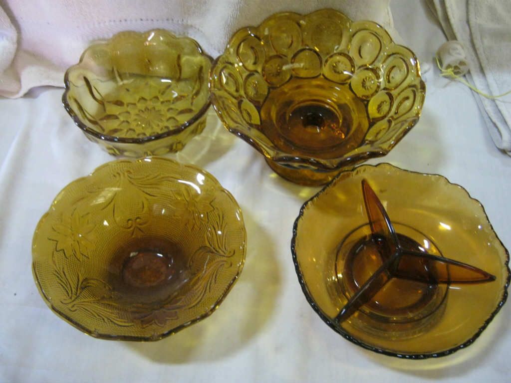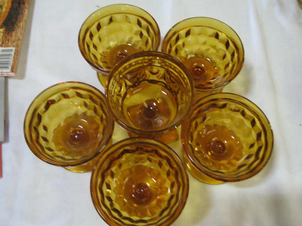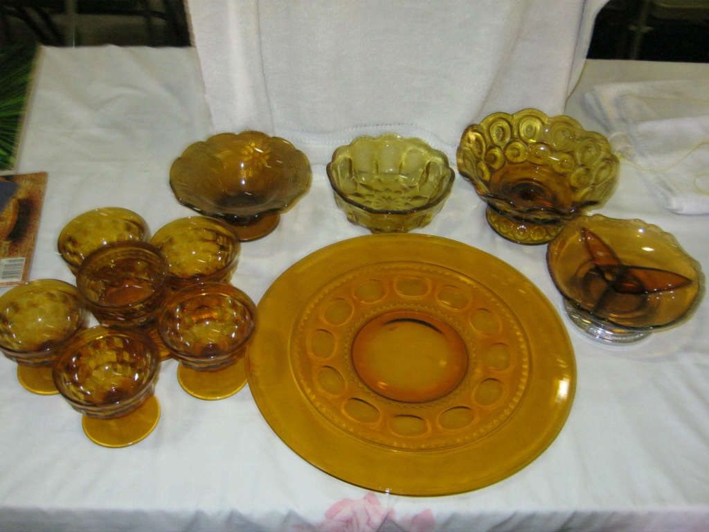 3- Pedestal Bowls 1- With Silver Bottom 1- Platter 6- Pedestal Desert cups.