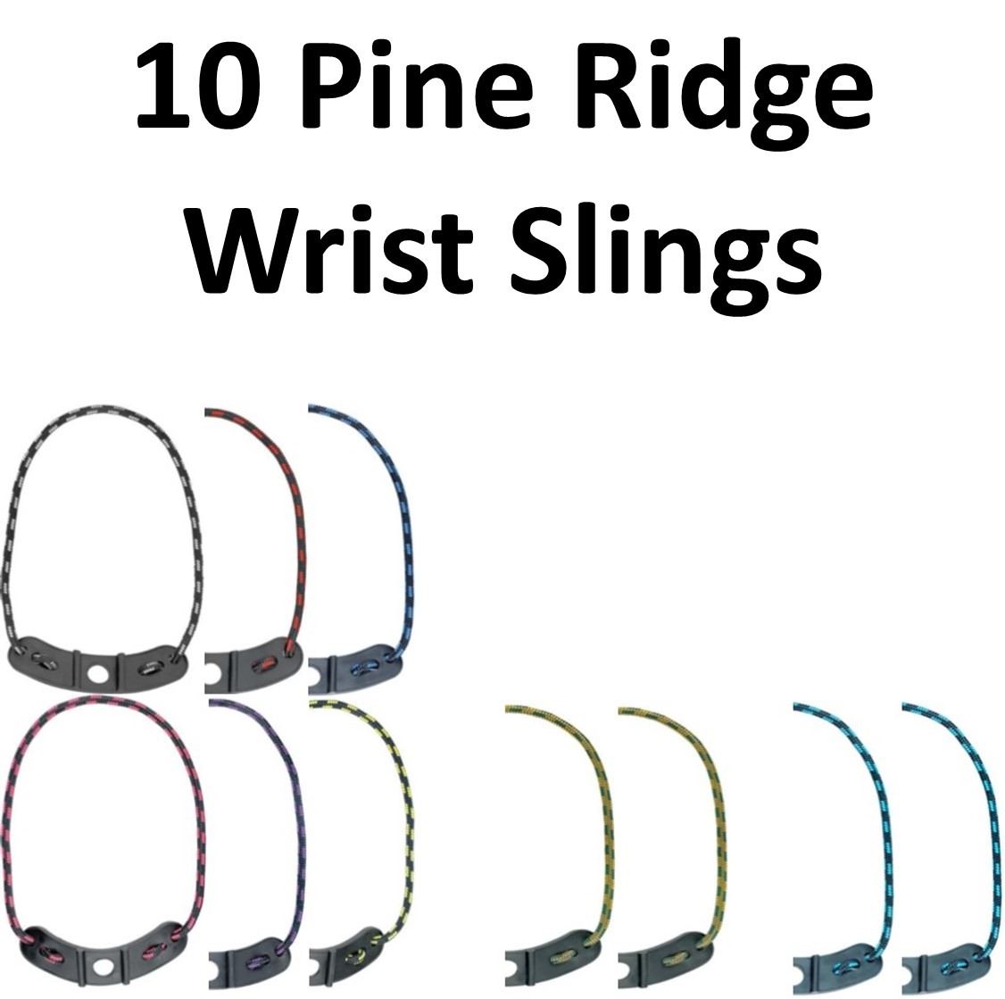 10 Pine Ridge Kwik Slings, 1 - Silver / Black, 1 - Red / Black, 1 - Blue / Black, 1 - Pink / Black, 1 - Purple / Black, 1 - Yellow / Black, 2 - Camo, 2 - Turquoise / Black