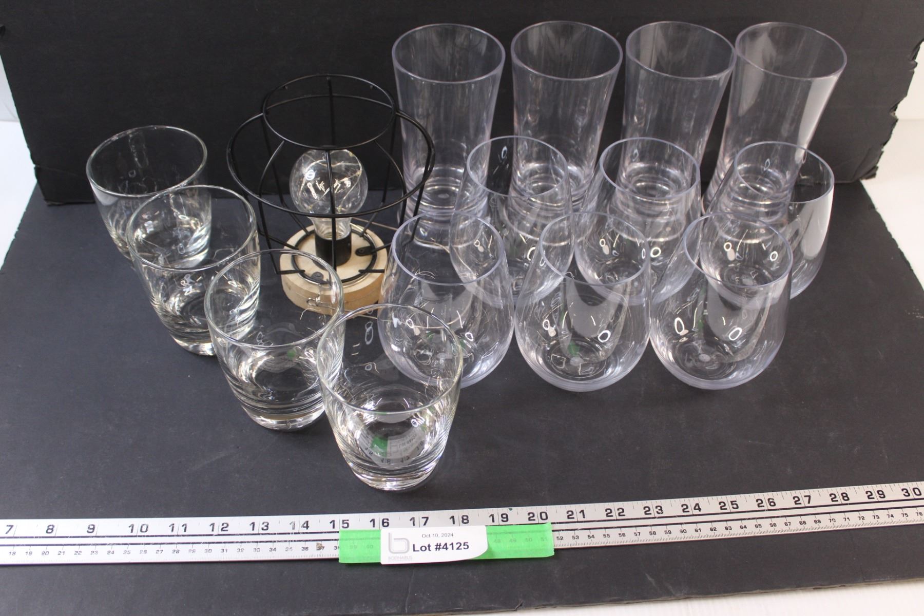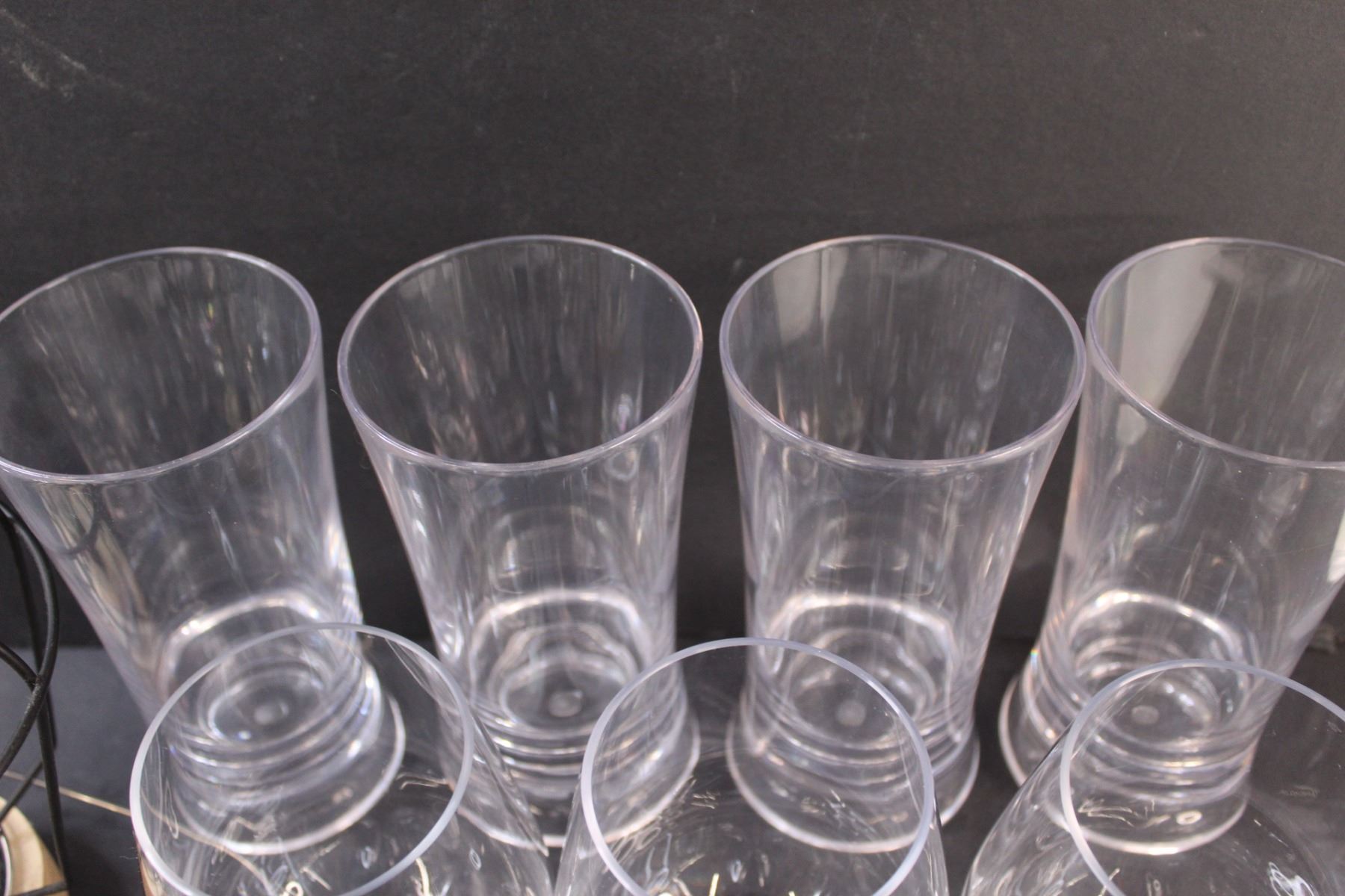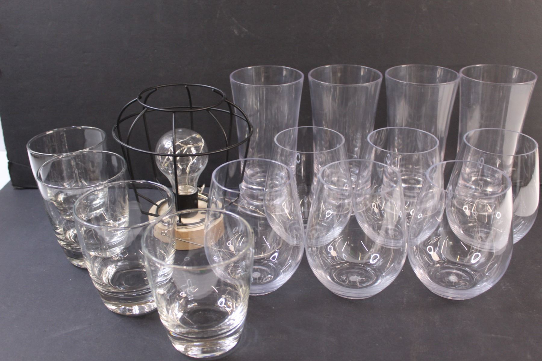(10) Plastic Glasses, (4) Glass Glasses, Battery Operated Flickering Light (Works)