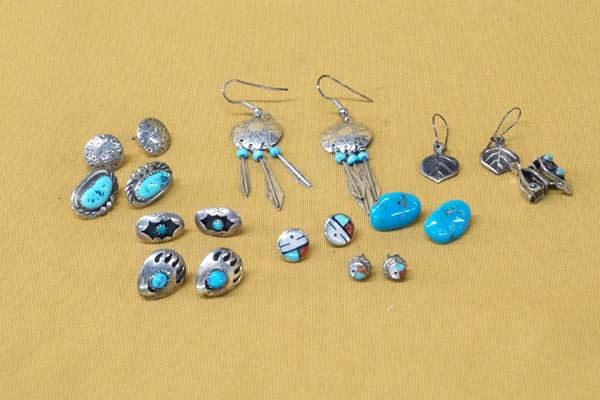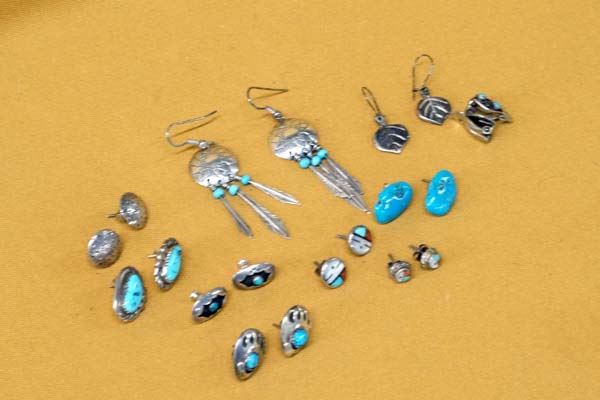 10 Pr of Navajo and Zuni Sterling Earrings, largest measures 2.5''L x .75''W and smallest measures .25''D, 25.7g in total wt.