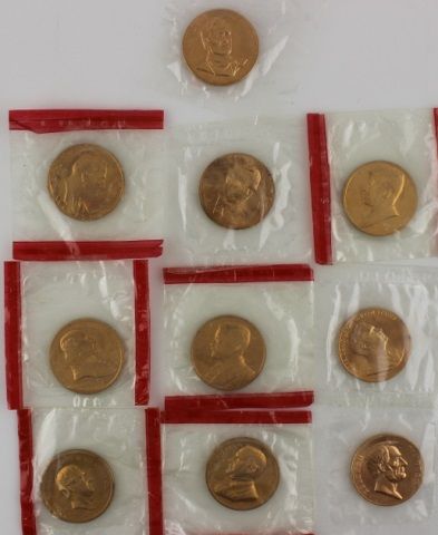 Lot of 10 Presidential medals in sealed bags includes: Franklin Delano Roosevelt, Gerald Ford, Theodore Roosevelt, John Adams, Abraham Lincoln, William McKinley, John F. Kennedy, Richard M. Nixon, Millard Fillmore and John Wayne who wasn't