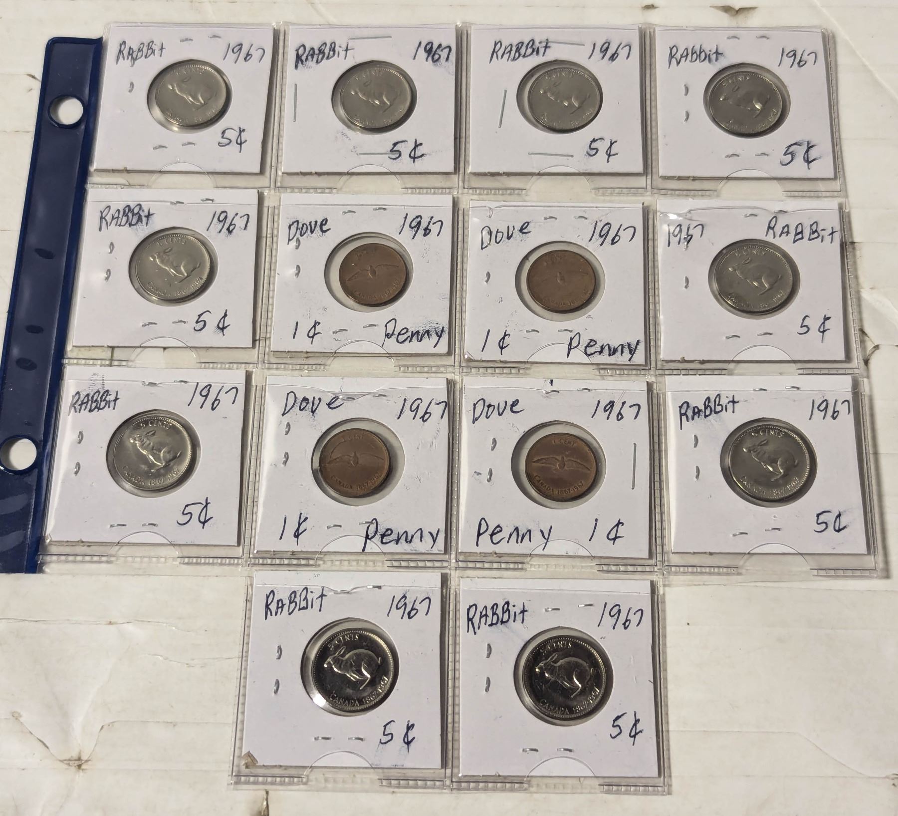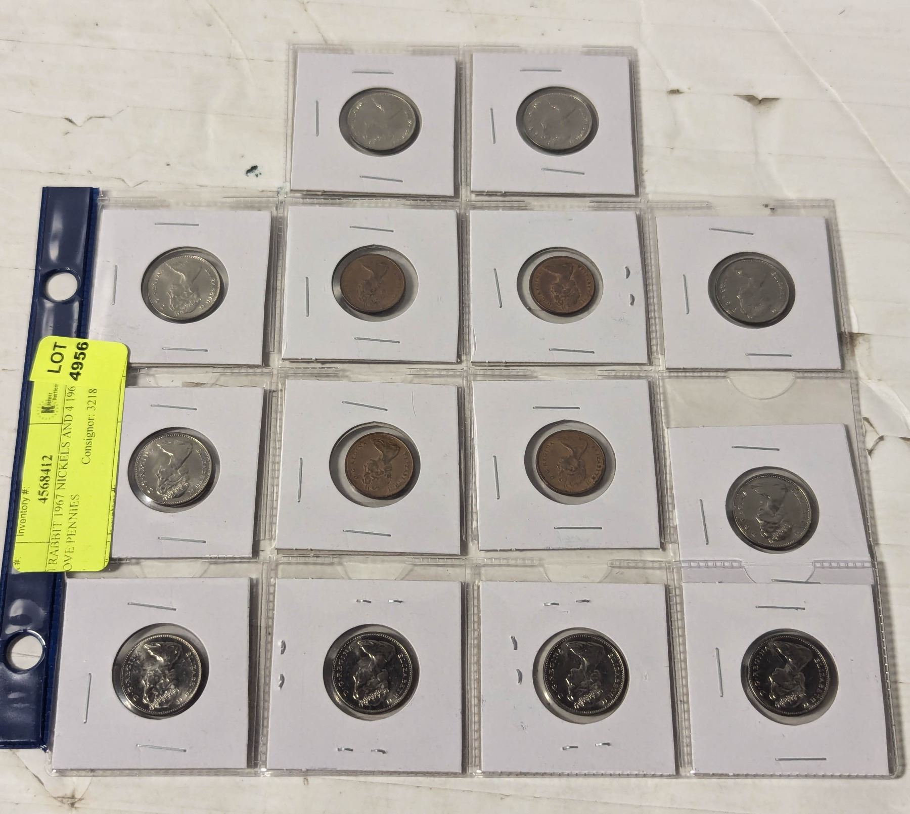 10 RABBIT 1967 NICKELS AND 4 1967 DOVE PENNIES