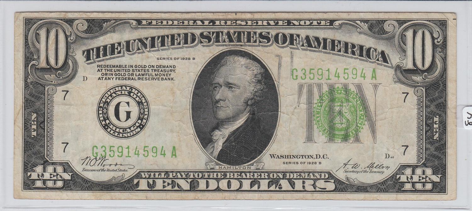 $10 REDEEMABLE IN GOLD 1928 FRN