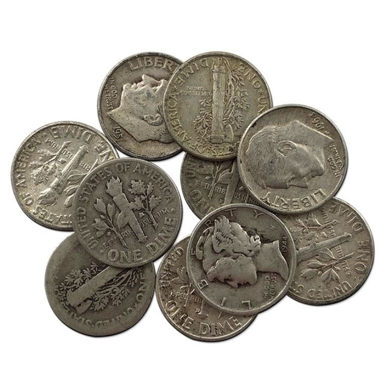 A lot of 10pcs. 90% Silver Dimes - Random mix and type.