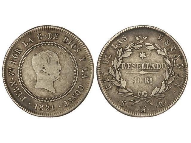 10 Reales. 1821. MADRID. S.R. Módulo 4 Reales. Resellado. Pátina. Cal-762. MBC-.