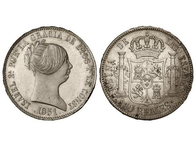10 Reales. 1851. MADRID. Brillo original. (Pequeños defectos del cospel en canto). ESCASA. Cal-221. EBC.