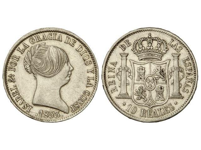 10 Reales. 1853. MADRID. (Rayas). Cal-223. MBC+.