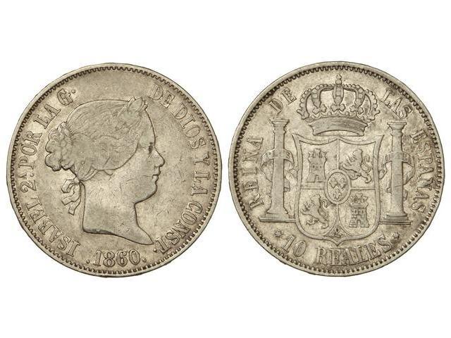 10 Reales. 1860. MADRID. (Golpecitos). Cal-229. MBC-.