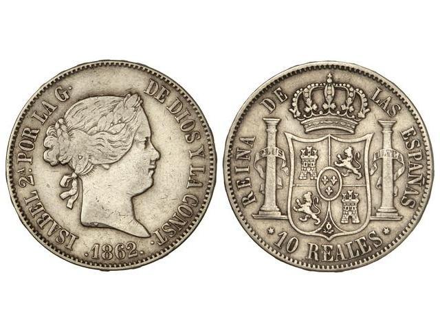 10 Reales. 1862. MADRID. (Golpecitos en anverso). Cal-231. MBC/MBC+.