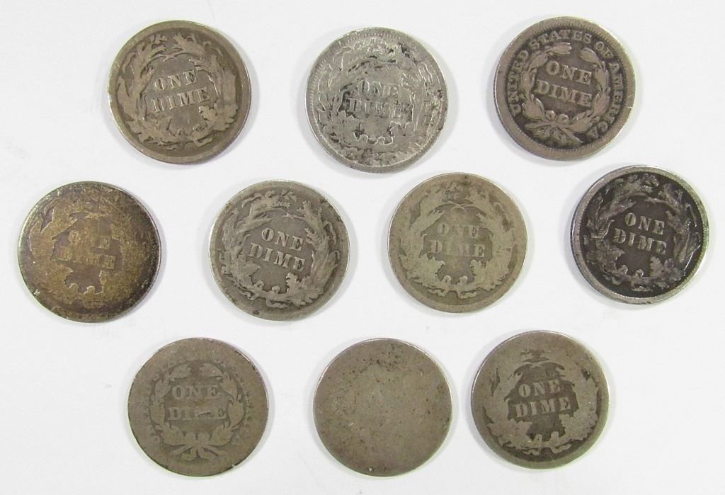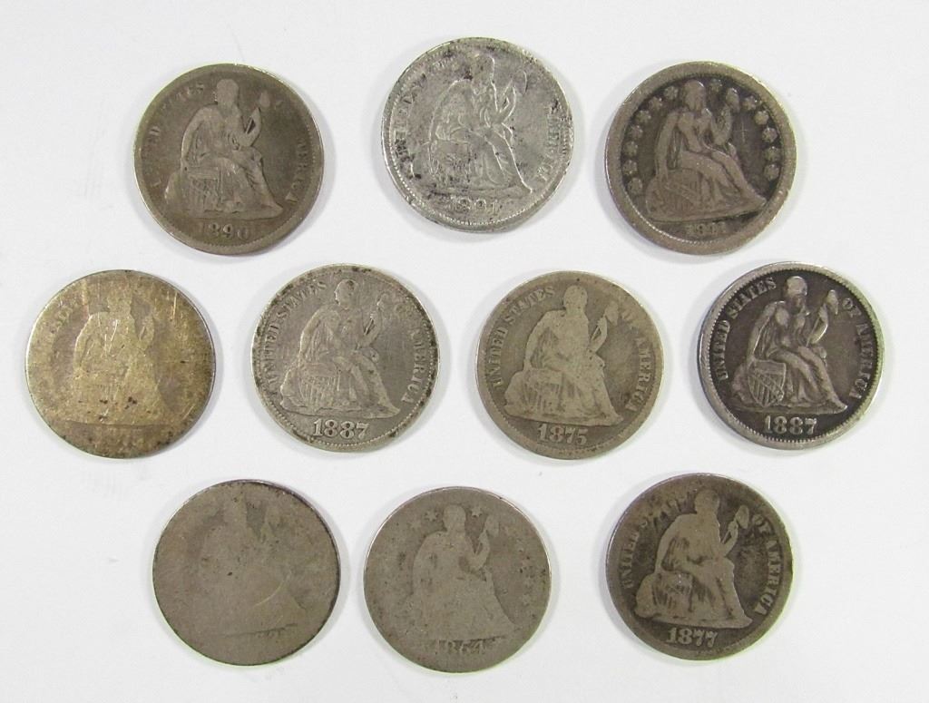 10 - SEATED DIMES , MIXED DATES & GRADES