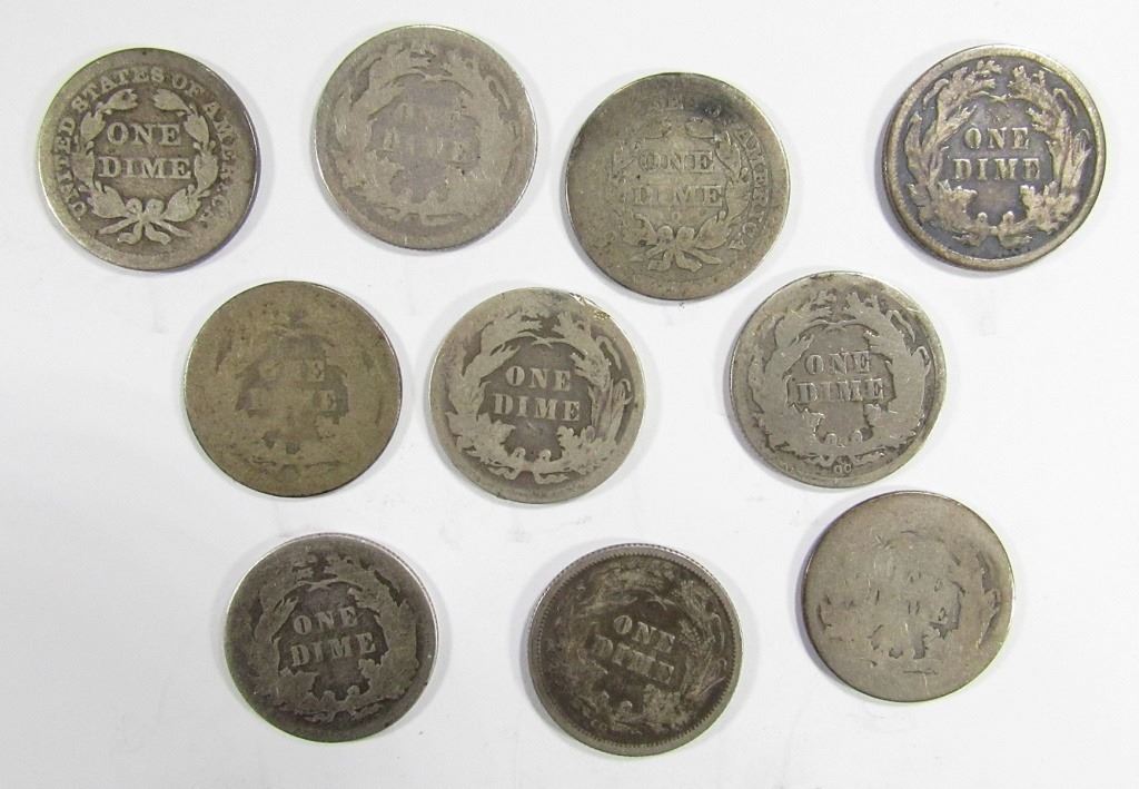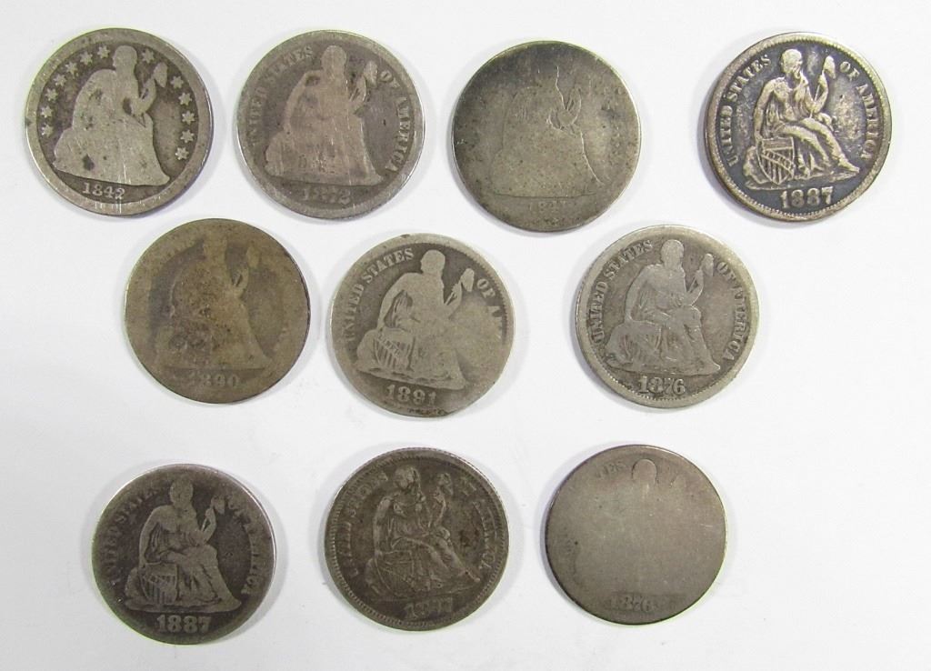 10 - SEATED DIMES , MIXED DATES & GRADES