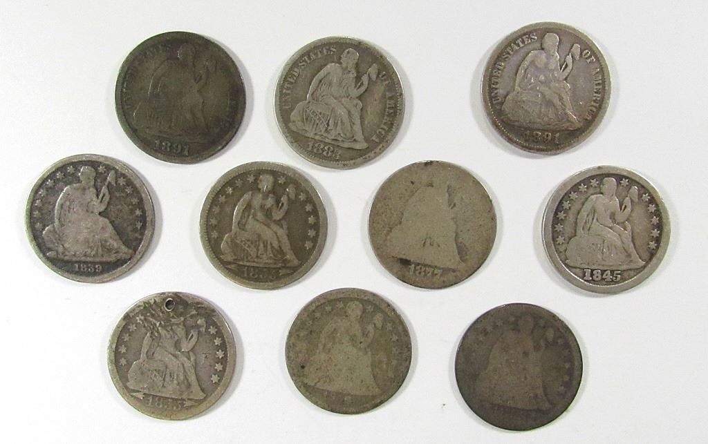 10 - SEATED DIMES , MIXED DATES & GRADES