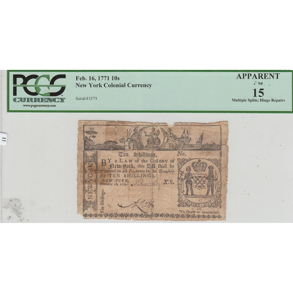 10 SHILLING COLONIAL CURRENCY 1771 PCGS