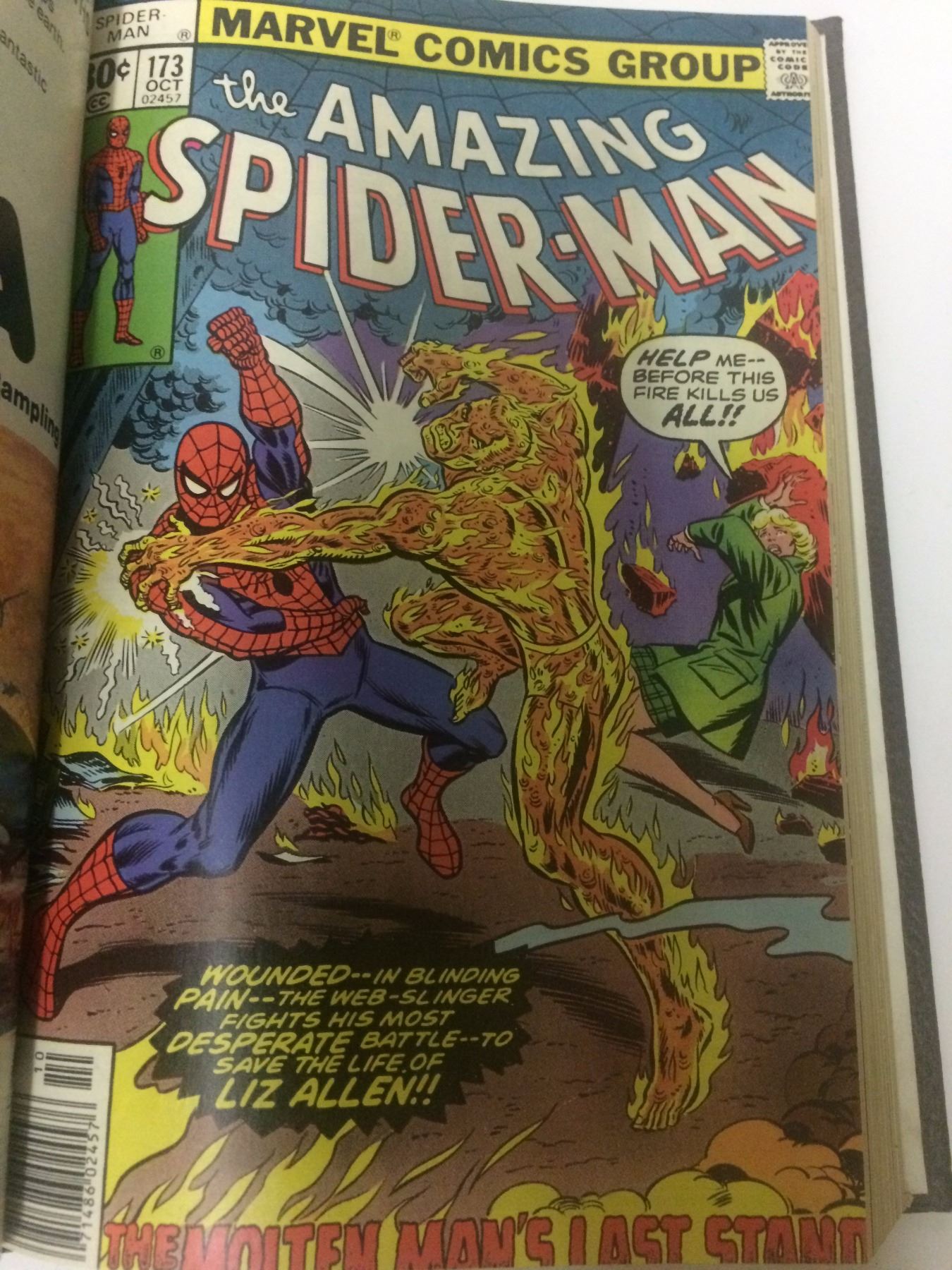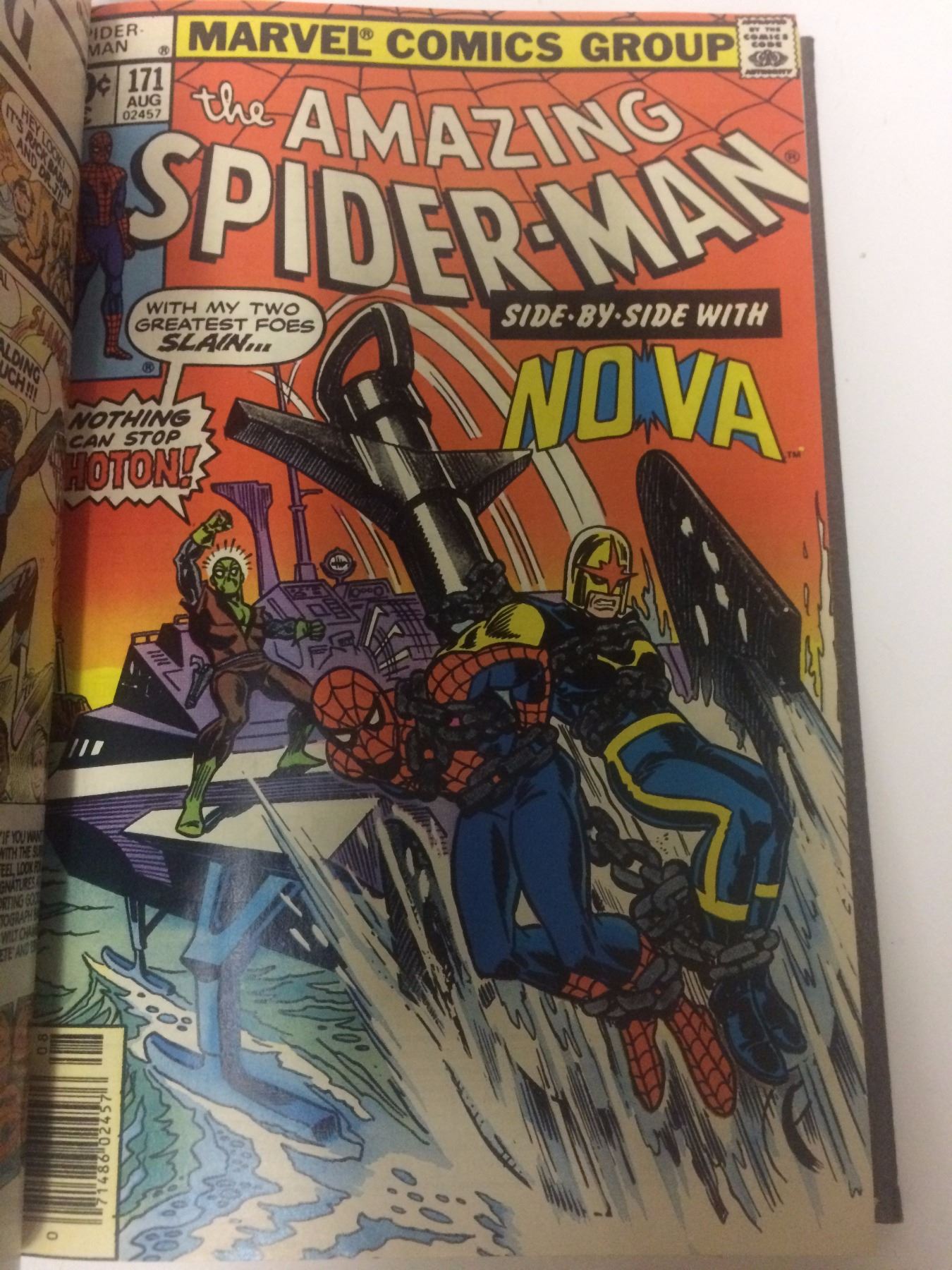 10 SILVER AGE SPIDER-MAN COMIC BOOKS (NEVER READ) #171-180 (BOUND & HARD COVERED)