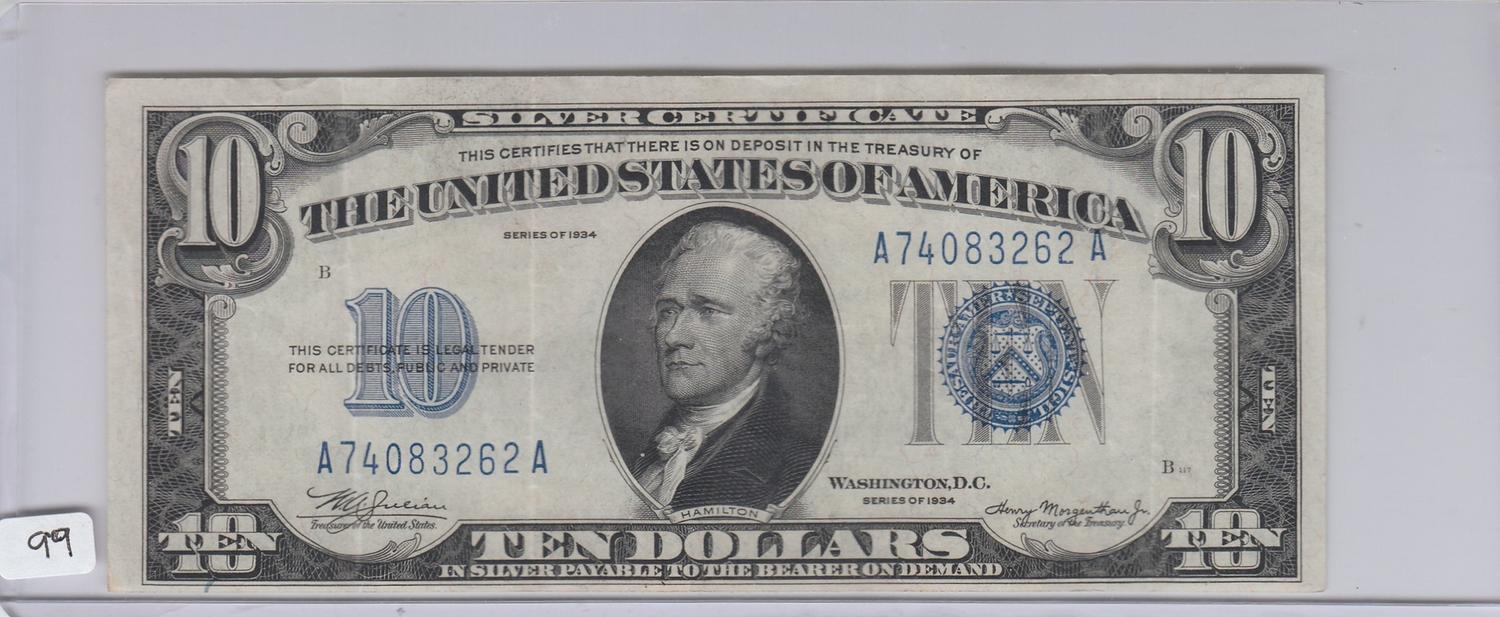 $10 SILVER CERTIFICATE BOLD APPEAL 1934