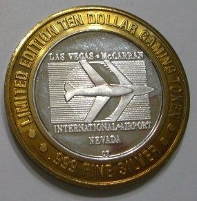 $10 SILVER STRIKE CASINO COIN .999 SILVER TOTA WEIGHT IS 1.32oz *RARE SEVEN-ELEVEN/AIRPOT MS HIGH GRADE*!! ***Coin, Currency & All Items Listed in this auction - Grades, Conditions and Values are not Safe Deposit Coins LLC Responsibilty.