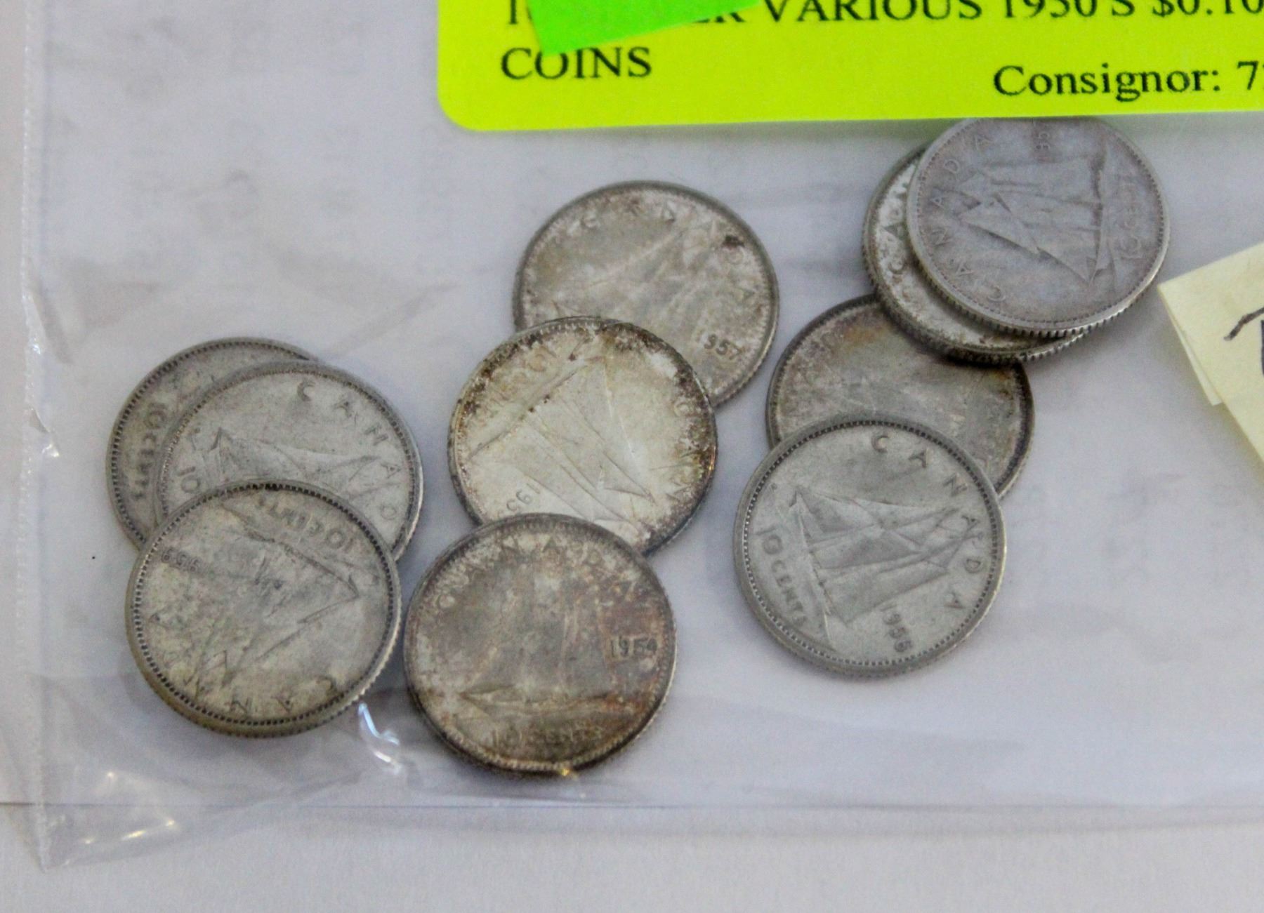 10-SILVER VARIOUS 1950'S $0.10 COINS