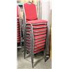 10 STACKING RED FABRIC CHAIRS W/ CUSHIONS
