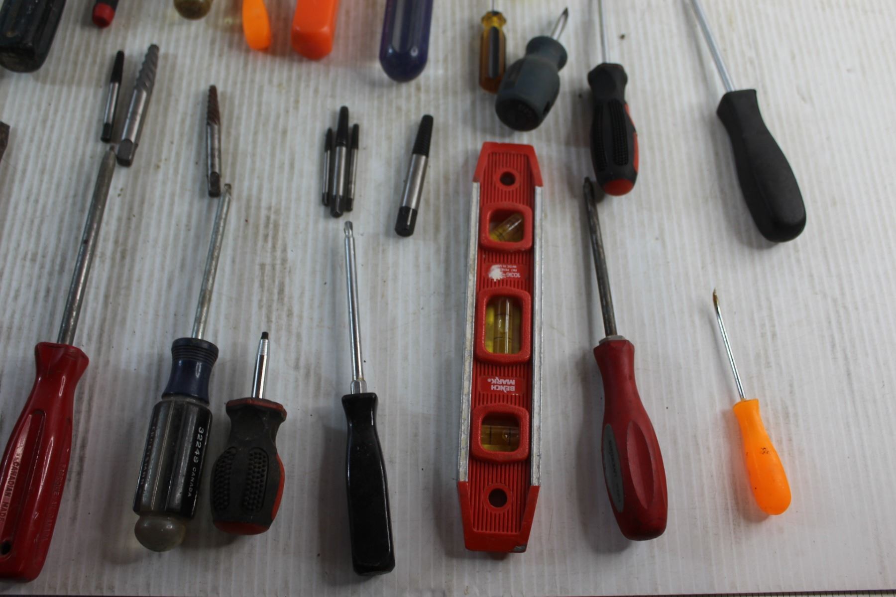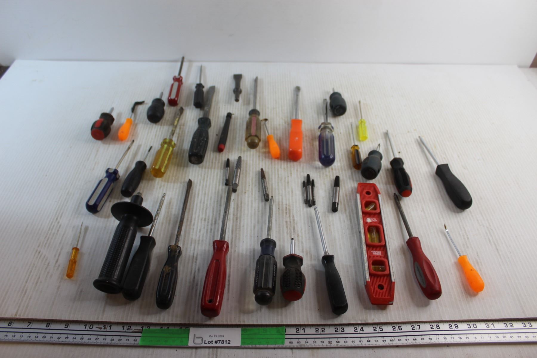 (10+) Screwdrivers, Spirit Level, Screw Extractors and Assorted Tools
