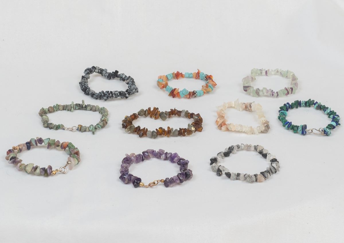 10 Semi-Precious Stone Stretch Bracelets, adjustable sizes, fits most wrists, lots of beautiful colors