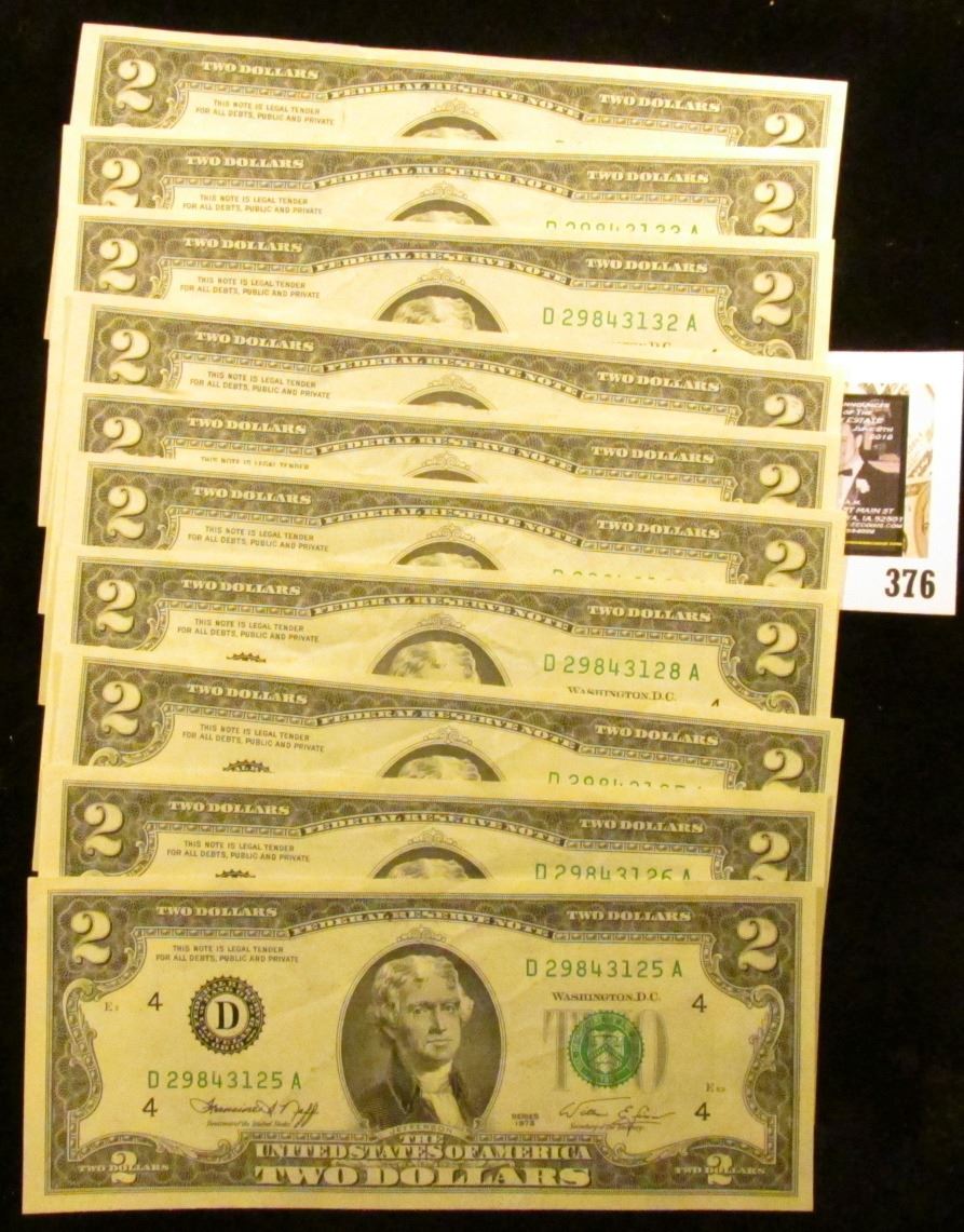 (10) Series 1976 Consecutively Serial Numbered Two-Dollar Federal Reserve Notes, CU.