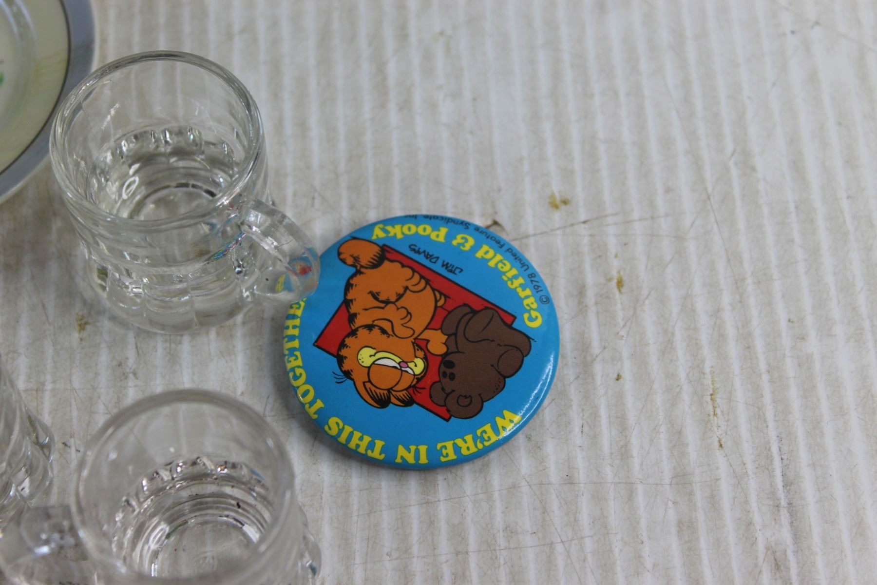 (10) Silver Dessert Spoons, Ultimate Bathroom Reader Book, (10) Miniature Mugs, Garfield Pin and Assorted Items