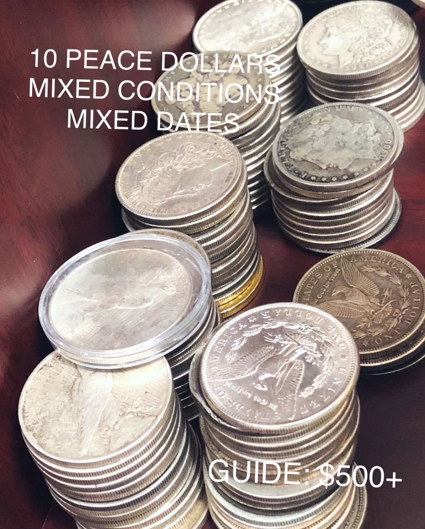 (10) Silver Peace Dollars - Mixed Dates/Conditions