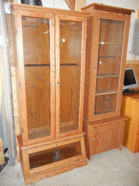 10 Slot Gun Cabinet w/ Deer & Duck Etched Glass Doors, Has Keys