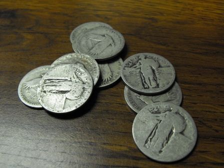 A Lot of 10 Standing Liberty Quarters Partial date to Readable Date
