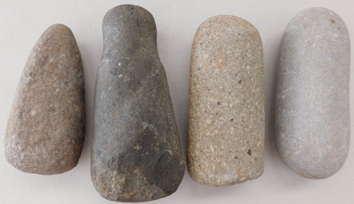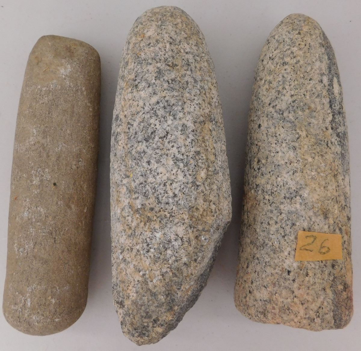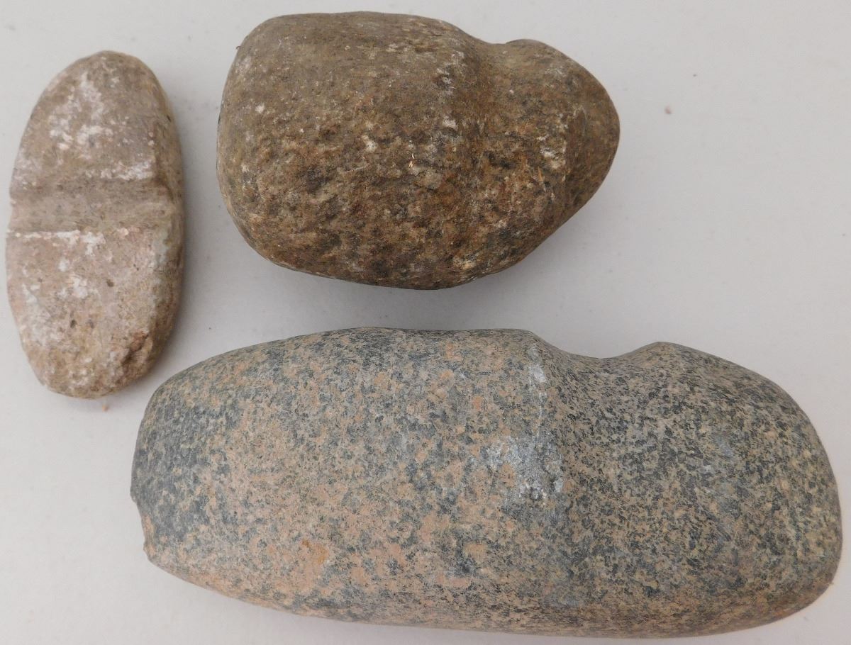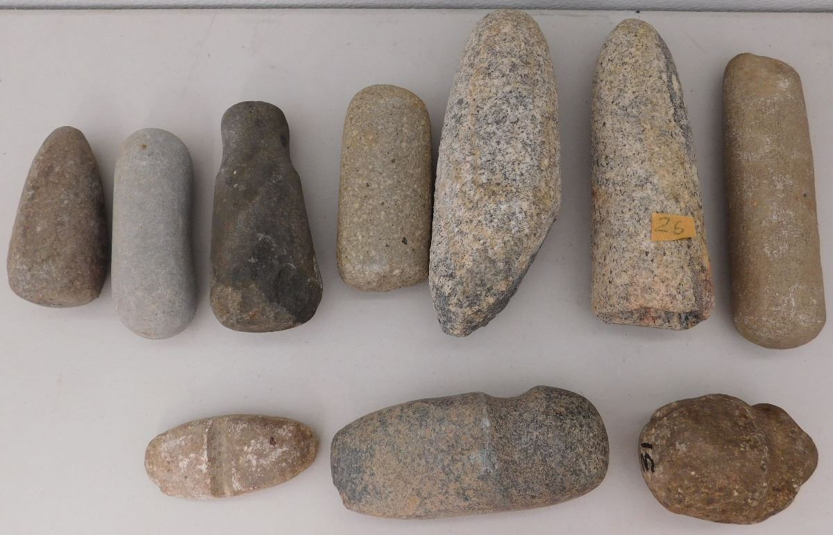 10 Stone Relics from San Diego County, pre-historic items, made from steatite and granite. The largest piece is 8 inches and the smallest is 4 inches. Condition: Items are as found. Shipping: $42.50 due to weight.