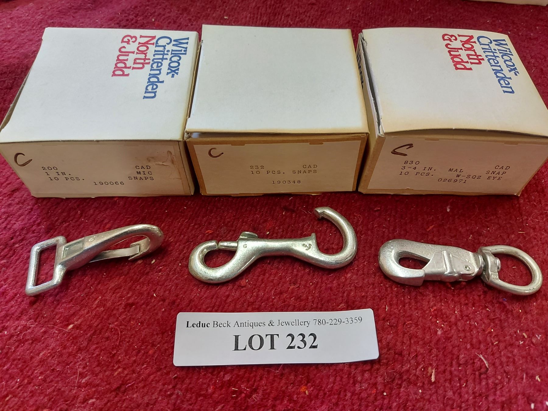 Swivel eye snaps (3/4") 1 box (10 pc), open end snaps 1 box (10 pc), saddle snap (1") 1 box (10 pc)