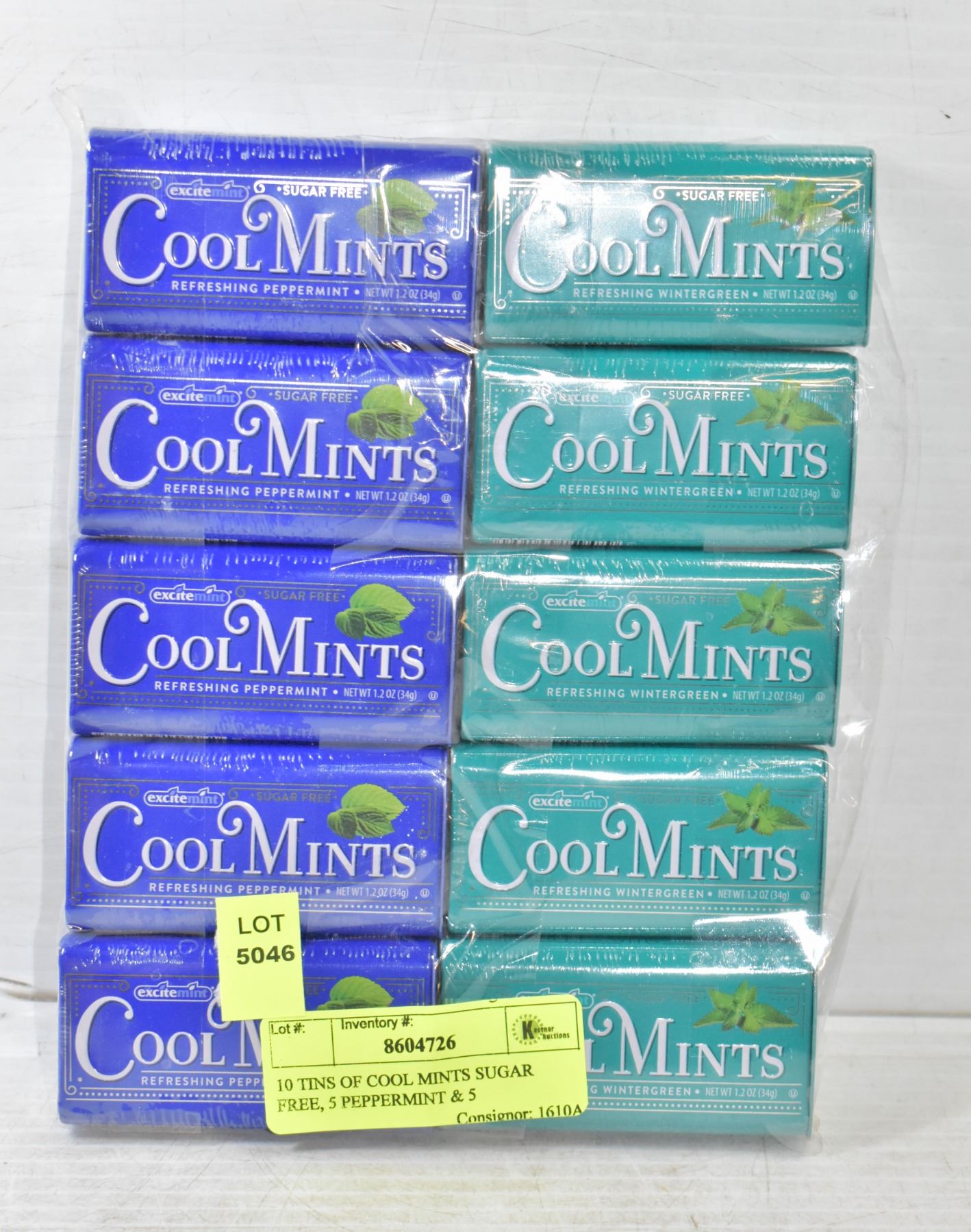 10 TINS OF COOL MINTS SUGAR FREE, 5 PEPPERMINT & 5