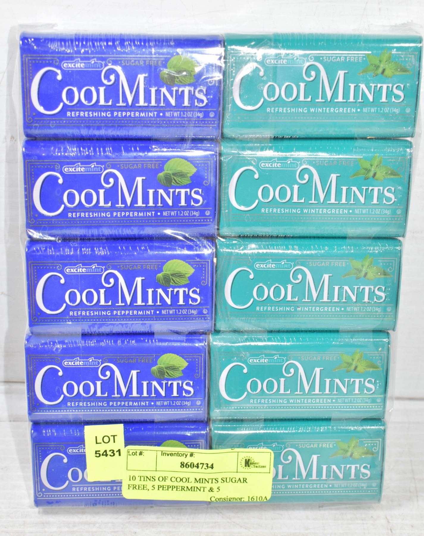 10 TINS OF COOL MINTS SUGAR FREE, 5 PEPPERMINT & 5