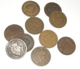 10 TOTAL INDIAN HEAD PENNIES *NICE MIXTURE OF DATES & GRADES*-SEPERATED INTO LOTS OF TEN FROM HUHGE CAN FILLED WITH THEM OF APPROX. 5000!! INDIAN HEAD PENNIES CAME OUT OF SAFE BOX!! ***Coin, Currency & All Items Listed in this auction - Grades, Conditions and Values are not Safe Deposit Coins LLC Responsibilty. Grades, Condition and Values are determined by Consigner(s) & Buyers