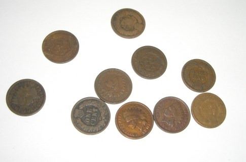 10 TOTAL INDIAN HEAD PENNIES *NICE MIXTURE OF DATES & GRADES*-SEPERATED INTO LOTS OF TEN FROM HUHGE CAN FILLED WITH THEM OF APPROX. 5000!! INDIAN HEAD PENNIES CAME OUT OF SAFE BOX!! ***Coin, Currency & All Items Listed in this auction - Grades, Conditions and Values are not Safe Deposit Coins LLC Responsibilty. Grades, Condition and Values are determined by Consigner(s) & Buyers