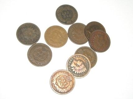 10 TOTAL INDIAN HEAD PENNIES *NICE MIXTURE OF DATES & GRADES*-SEPERATED INTO LOTS OF TEN FROM HUHGE CAN FILLED WITH THEM OF APPROX. 5000!! INDIAN HEAD PENNIES CAME OUT OF SAFE BOX!! ***Coin, Currency & All Items Listed in this auction - Grades, Conditions and Values are not Safe Deposit Coins LLC Responsibilty. Grades, Condition and Values are determined by Consigner(s) & Buyers